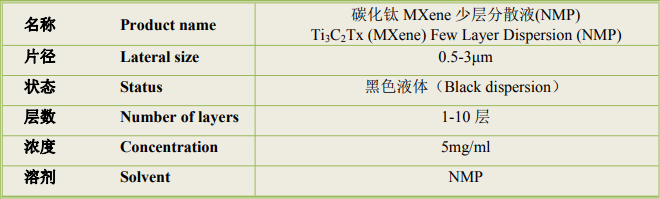 中文名称:碳化钛(Ti3C2Tx) MXene少层分散液(NMP)